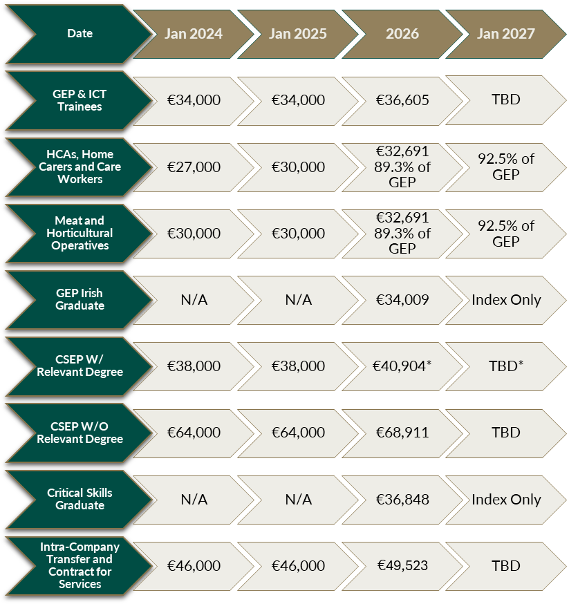 - Critical Skills Employment Permit (CSEP) thresholds will rise by 7.66%, instead of 15.8%.
